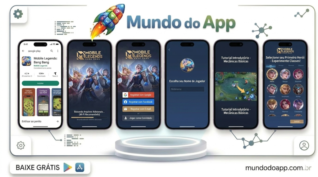 Primeiro, acesse a Google Play Store (Android) ou a App Store (iOS) e pesquise por “Mobile Legends: Bang Bang”. Toque em instalar e aguarde o download.